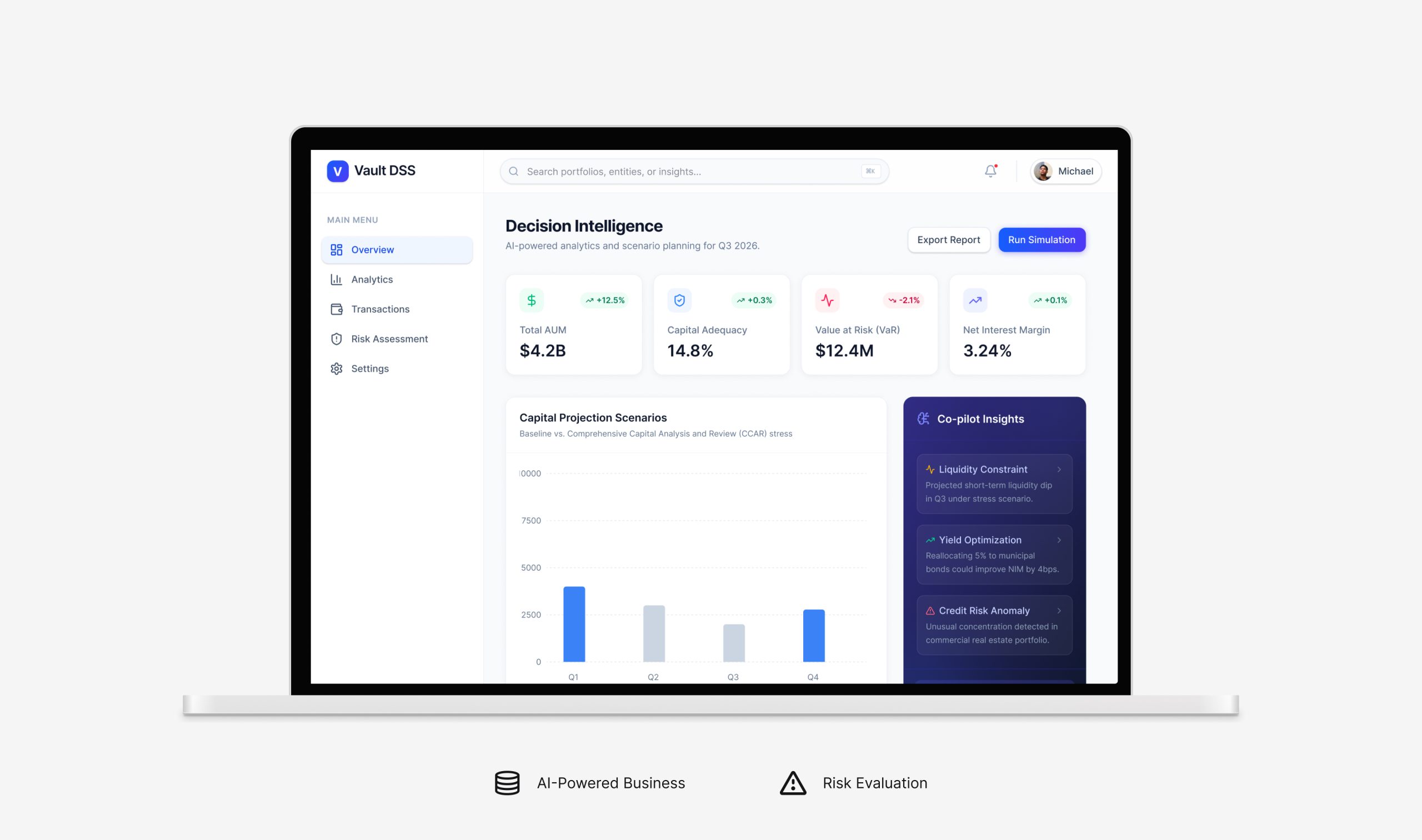 Predictive insights • Risk analysis interfaces • Intelligent recommendations • Scenario modelling tools